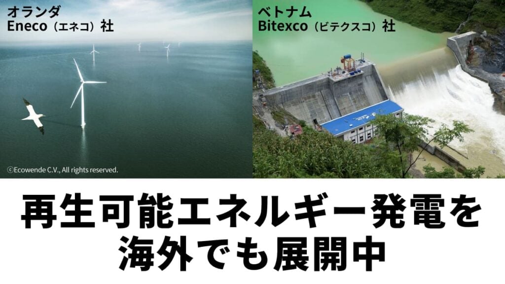 同社は国内だけでなく、海外でもGXを推進。欧州のEneco(エネコ)やベトナムのBitexco(ビテクスコ)などへの出資を通じて脱炭素社会の実現に貢献しています。こうした投資は環境目的だけではなく、収益性のある事業へ育てている点も特徴です。