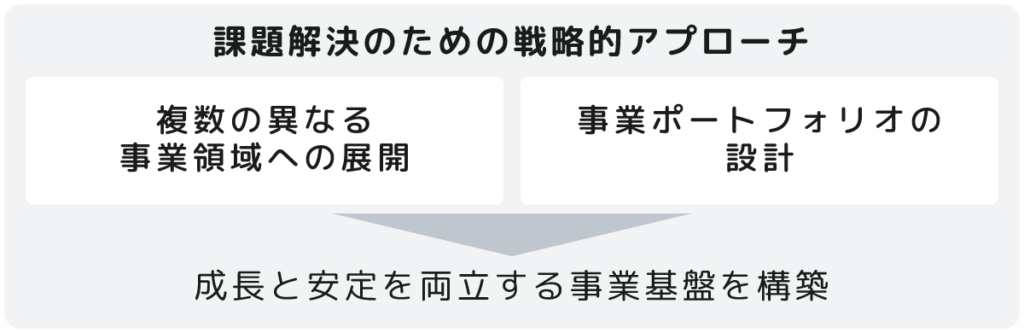 そこで同社は、複数の事業を持つことで収益源を分散し、会社全体としての安定感を高めようとしています。事業領域を広げることで、環境変化に強い体制をつくり、成長に向けた投資と、必要に応じた見直しを続けられる経営を目指す考え方です。