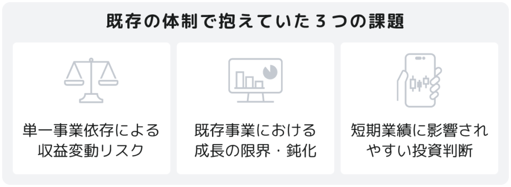 同社が多角化に踏み出した背景には、既存事業が抱える課題がありました。