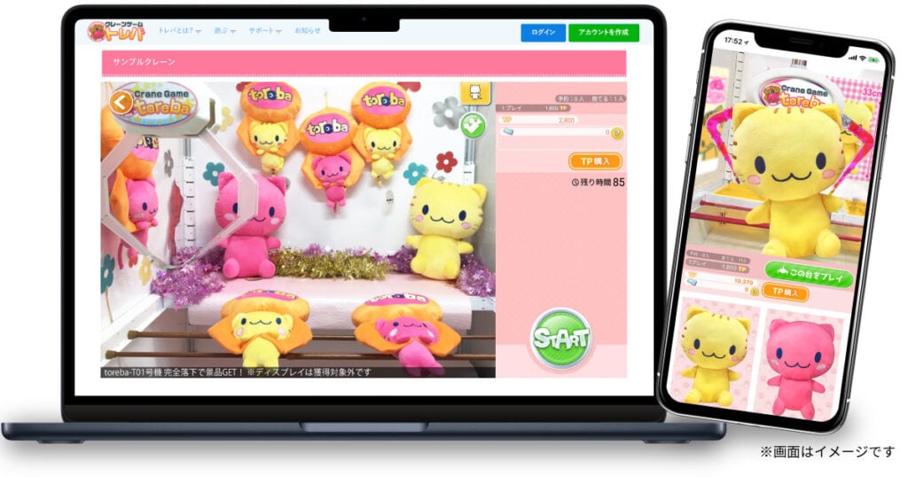 代表的なサービスのひとつが、オンラインクレーンゲーム「トレバ」です。スマホやPCから実際のクレーンゲーム機を遠隔操作できる仕組みで、国内だけでなく海外でも人気を博しています。