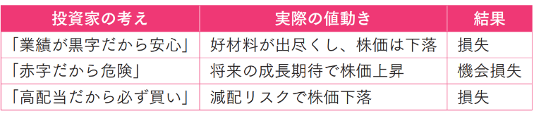 例えば、ある企業が好決算を発表しても、すでに市場参加者がその好材料を織り込み済みであれば、株価はむしろ下落することもあります。逆に、赤字を計上していても、新製品や新市場への期待が高まれば、株価は先回りして上昇するのです。
