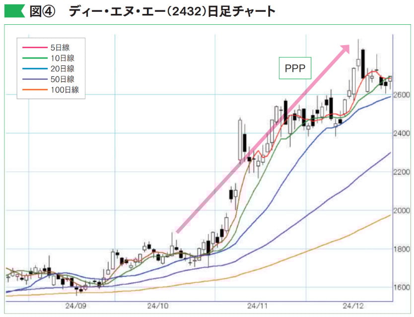 これを相場流では「PPP」と呼んでいます。「パンパカパーン♪」というファンファーレとともに株価が上昇していく局面がイメージできるからです(図④)。