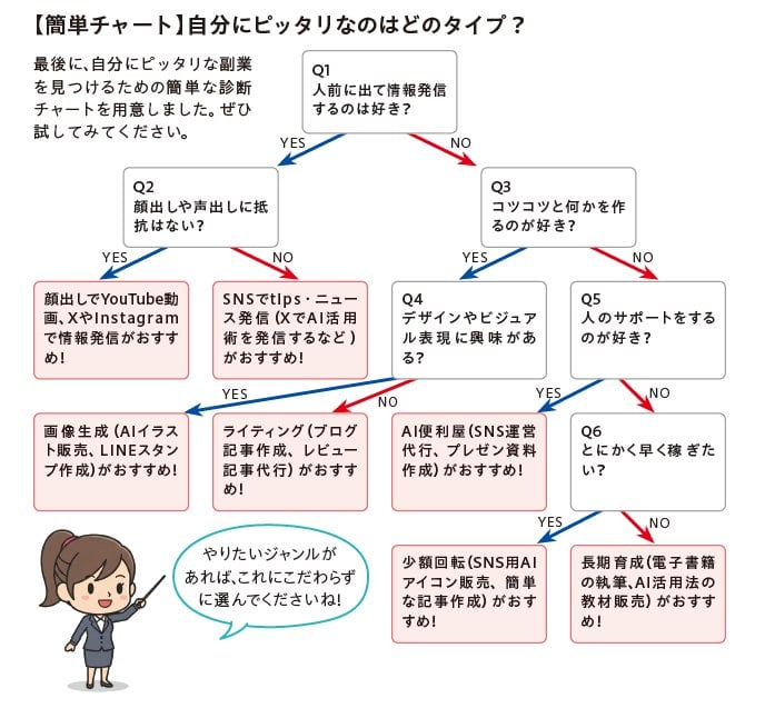 「自分はどのパターンだろう……」と迷ってしまうかもしれません。そんなときは、まず「AI便利屋」から始めてみるのがおすすめです。なぜなら、クラウドソーシングサイトなどで仕事を見つけやすく、すぐに収益を得やすいからです。金額は小さくても成功体験を積み重ねることで、自信にもつながります。