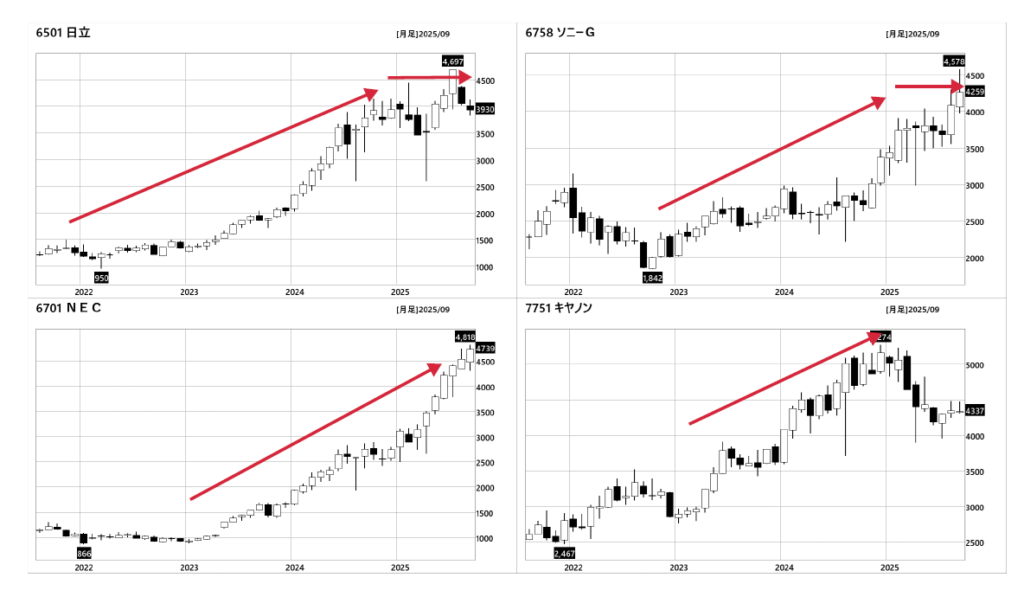 本稿で紹介している個別銘柄:キヤノン(7751)、日立(6501)、NEC(6701)、ソニー(6758)
