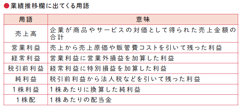 四季報の業績推移欄は、決算書の売上や利益を時系列でまとめたものです。